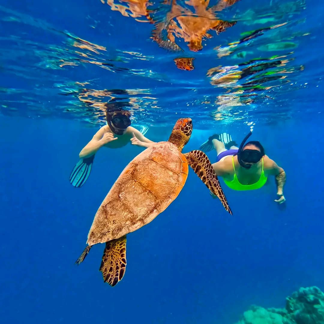 Swim alongside playful dolphins in crystal-clear waters